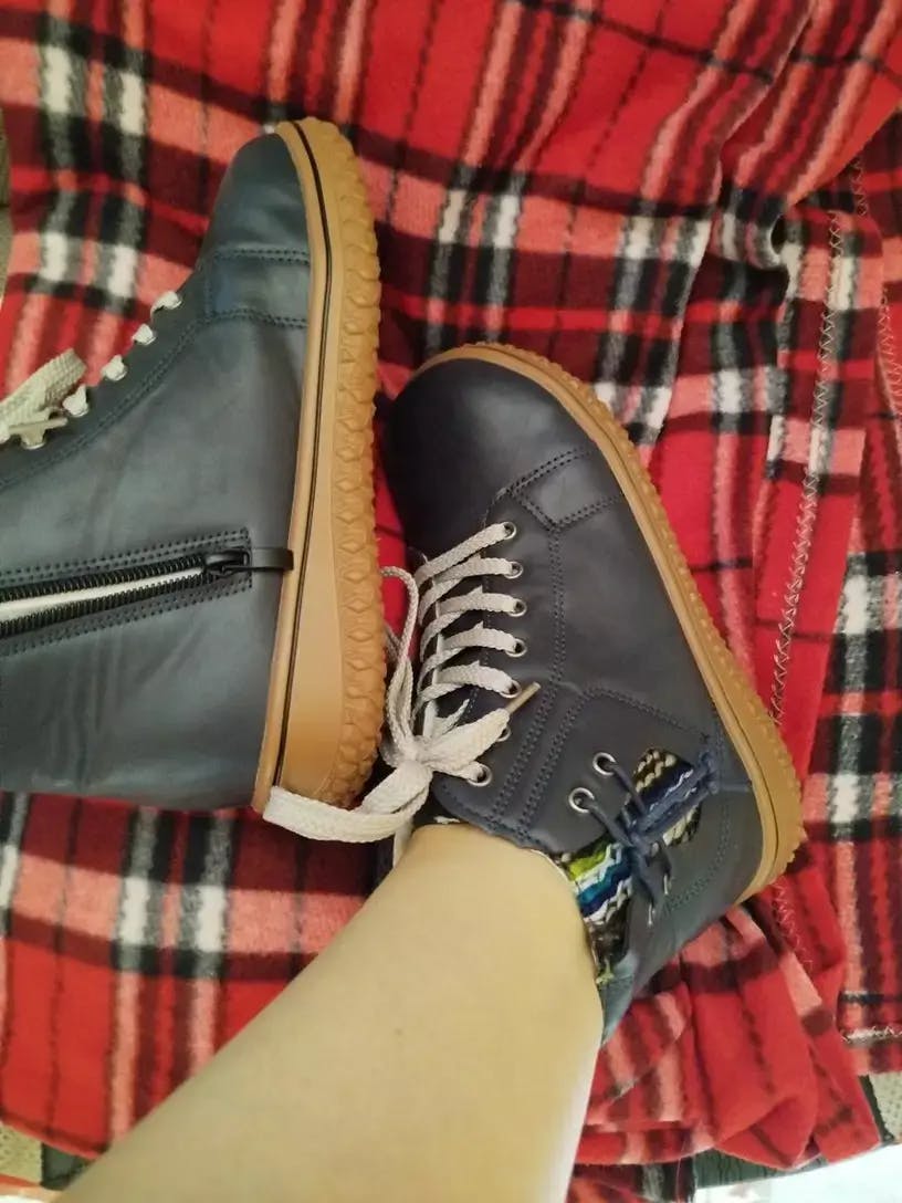 Je cherchais des bottines de cette couleur vert olive depuis longtemps. Elles sont magnifiques ! Elles s'accordent aussi bien avec un jean brut qu'avec une jupe. La doublure chaude est un vrai plus. Très satisfaite de mon achat.